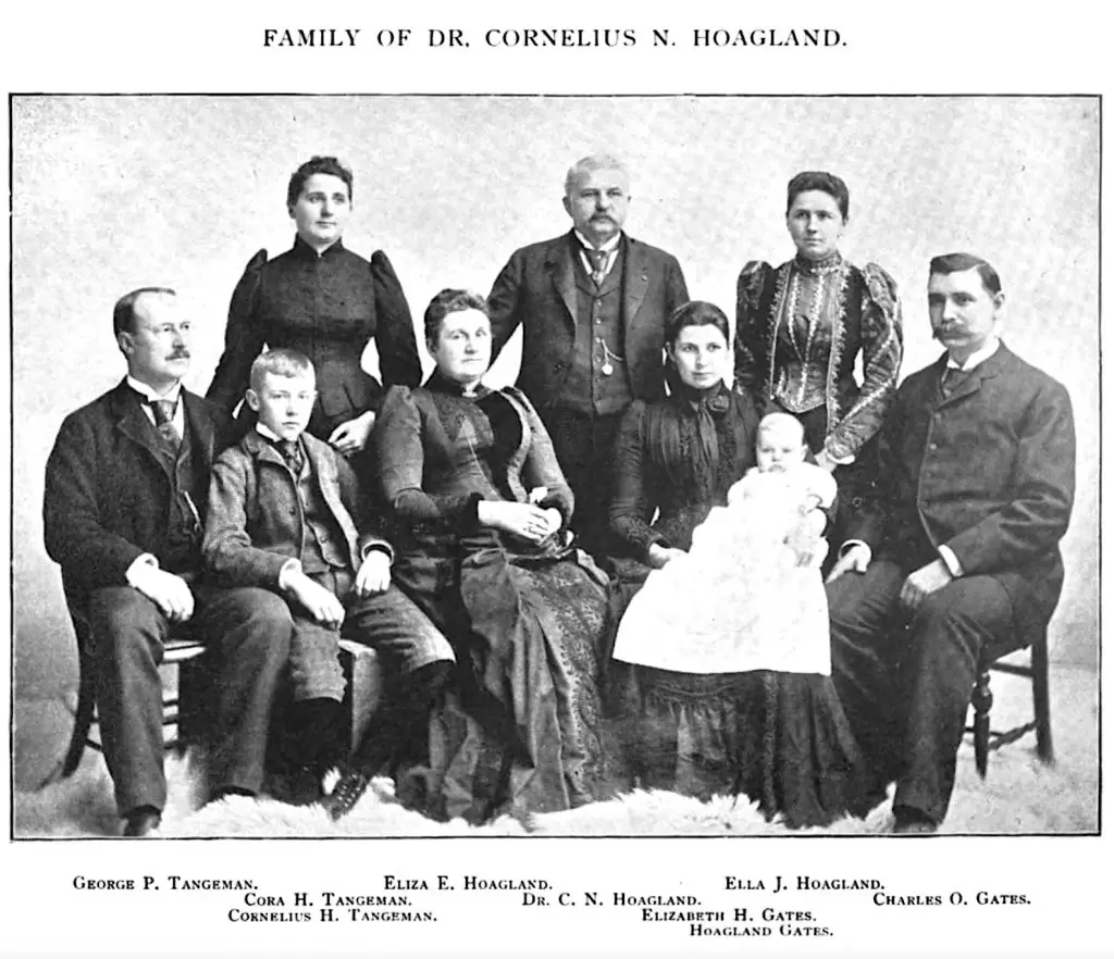 An expert photographer with a specialty in photo-micrography, Cornelius Hoagland’s slides were used by many lecturers. He was a fellow of the Royal Microscopical Society of London, a regent of Long Island College Hospital, and a trustee and director of many financial and benevolent institutions. In addition, he directed the Brooklyn Eye and Ear Hospital, and became a proponent and philanthropist in the kindergarten movement hoping to benefit children at an impressionable age. In addition, he was a director of the People’s Trust Company, the Dime Savings Bank and the Brooklyn Heights Railroad as well as having connections to other corporations and colleges (Syracuse University, Antioch College and Adelphi College). Hoagland was a life member of the American Geographical Society, the New York Genealogical and Biographical Society, and the Long Island Historical Society. He belonged to the Union League, the Ohio Society, and the Oxford, Brooklyn, Down Town Germania and Hamilton Clubs. As per his obituary in the New York Herald, he was a member of the Military Order Loyal Legion United States Commandery, a patriotic fraternal association, whose members were invited to attend his funeral.