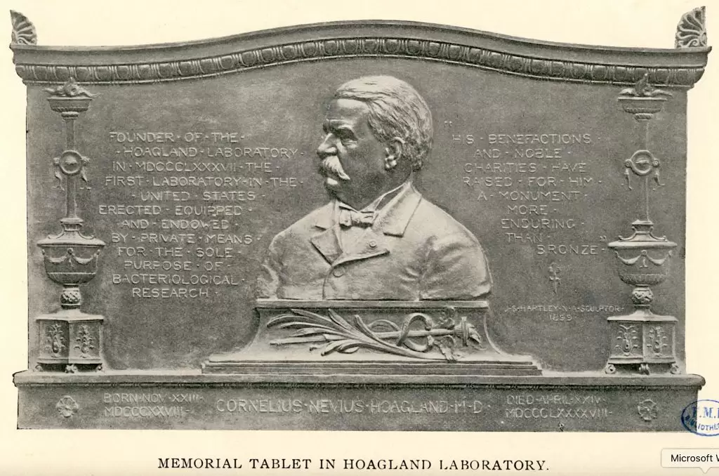 As per one biography, the death of his grandson to diphtheria in 1884 reawakened his medical interests and reinforced his belief that the study of medical bacteriology offered mankind great hope against disease. To the original expenditure of about $100,000 he added an initial endowment of $50,000. (Another endowment of $24,000 was made before his death.) Of the original investment, the following expenditures were made: site, $24,000; building, $56,606.74; cabinetry and furniture, $6,675.19; apparatus, $4,090.17; library, $3,093.09; pavement, $1,064.65; total, $95,529.84. According to Lyman Horace Weeks, editor of Prominent Families of New York, a series of biographies, a bronze memorial plaque on the Henry Street façade of Hoagland’s facility read, “the first laboratory in the United States erected equipped and endowed by private means for the sole purpose of bacteriology.” About 82 students and physicians studied bacteriology there and another 1,360 students, many of whom became practicing physicians, studied histology and pathology.