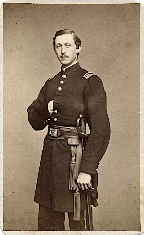 At the start of the Civil War, Kip rose to first lieutenant on May 14, 1861, and to adjutant on September 27. On August 20, 1862, he was promoted to major and aide-de-camp and commissioned that day into the United States Volunteers Aide-de-Camp. On October 1, 1862, Major General Edwin V. Sumner, United States Army, wrote in his field report from Harpers Ferry, Virginia, about the Battle of Antietam, Maryland (September 17), praising Kip, his aide, for his “zeal and devotion.” Sumner noted, “These young men behaved in the most gallant manner, and did all that men could do to aid me throughout this trying battle.” Kip served with United States Volunteers until his resignation on August 15, 1863. On June 11, 1864, he was promoted to captain by brevet for his service at Trevillian Station, Virginia. After re-enlisting as lieutenant colonel on July 13, 1864, he was commissioned into the Field and Staff of the 8th New York Heavy Artillery but declined that commission. He was brevetted to major on March 31, 1865, for actions at Dinwiddie Court House, Virginia, and brevetted to lieutenant colonel on April 1, 1865, for service at Five Forks, Virginia. Kip was promoted to captain on August 13, 1866. Kip last lived in New York City. His death was caused by cancer. Section 19, lot 9005, grave 27.