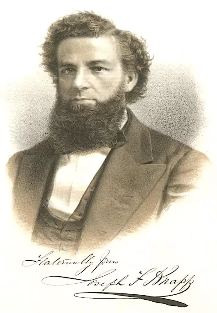 KNAPP, JOSEPH FAIRCHILD (1832-1891). Businessman. At age 16, Knapp, who was born in New York City, apprenticed as a lithographer to Frances (Fanny) Flora Bond Palmer (see), who later became Currier & Ives most prolific artist. As per an unpublished history of lithography written by the lithographer Charles Hart in 1902 and cited in Fanny Palmer: The Life and Works of a Currier & Ives Artist, by Charlotte Streifer Rubinstein, Knapp learned the technique of using rubbing stuff, or tint ink, in printing to create background color. Knapp became a partner in Sarony & Major at the age of twenty-two. That establishment, a major lithographic firm, later known as Major & Knapp, made him a very wealthy man. A prominent Brooklyn businessman, Knapp lived in an elegant house on Bedford Avenue and Ross Street where he held receptions for leading artists and citizens. He began investing in and serving on the board of several insurance companies, among them Union Life.