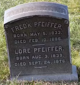 PFEIFFER, FREDERICK (1833-1896). Private, 5th Regiment, New York State Militia, Company C. Of German origin, he enlisted as a private at Washington, D.C., on May 16, 1861, mustered into Company C of the 5th Regiment’s State Militia on that day, and mustered out of service after three months on August 7, 1861, at New York City. His last residence was 715 Second Avenue in Manhattan. Pfeiffer died of nephritis. Section 17, lot 17245, grave 958.