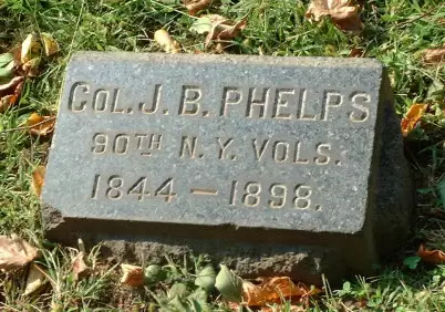 PHELPS, JOHN (or J. B.) (1844-1898). Corporal, 90th New York Infantry, Companies H and E. After enlisting as a private at New York City on October 1, 1861, he mustered into Company H of the 90th New York the next day, was promoted to corporal on December 27, 1862, transferred to Company E on April 7, 1863, and mustered out on October 1, 1864, at New York City. Section 68, lot 3334.
