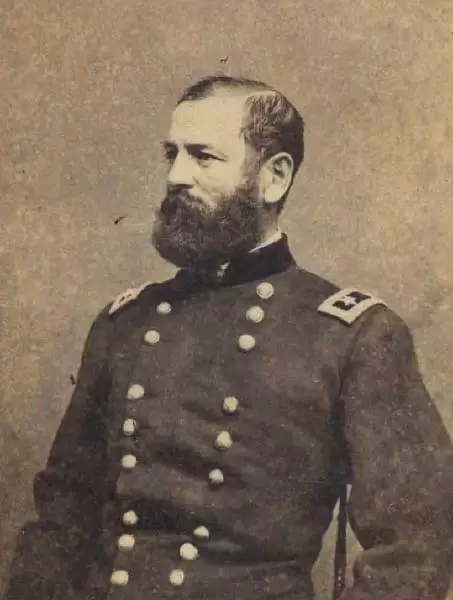 After becoming colonel on September 10, 1862, Potter was again deemed worthy of the “highest praise” by Ferrero, who was now brigadier general of the Army, for his actions in Fredericksburg, Virginia, on December 16, 1862. Among the other battles in which he fought were Cedar Mountain, Second Bull Run, and Chantilly (all in Virginia), and Antietam, Maryland, where he took part in the assault on the stone bridge. Potter’s “steadiness and courage” were considered noble as was the conduct of the 51st New York. After he became brigadier general on March 13, 1863, Potter commanded the 9th Corps of Division 2 from June 6, 1863-August 25, 1863, leading the Army and Department of the Ohio. Continuing his command of the 9th Corps, he was in charge of the Department of Tennessee from June 14, 1863-August 18, 1863, and then returned to lead the Army and Department of the Ohio from August 25, 1863-January 17, 1864. He then assumed command of the Army of the Potomac from May 1, 1864-April 2, 1865. After he was injured at the Battle of Petersburg, Virginia, on April 2, 1865, he continued to suffer from these wounds throughout his life. Brevetted to major general on August 1, 1865, he was commissioned to that rank on September 29, 1865, and mustered out in January 1866.