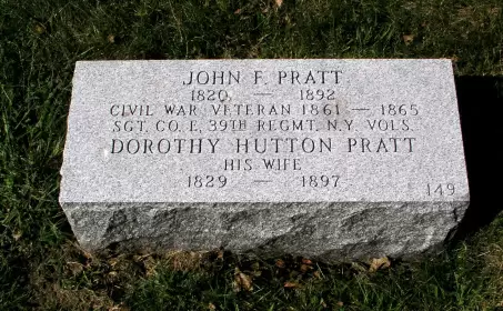 After the Civil War, Pratt was secretary of the 1st New York’s Association. In 1879, he applied for and received a pension but his physical problems prevented him from returning to the printing trade and he earned a living as a porter and as a circular distributor. His death was caused by phthisis (tuberculosis). In 1893, his widow, Dorothy Pratt, who is interred with him, applied for and received a pension. Section 127, lot 3139, grave 149.