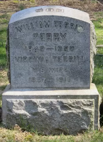 PERRY, WILLIAM FERRIS (1842-1920). Private, Louisiana Washington Artillery Battalion, Company C, Confederate States of America. Perry was born in New York City. As per his obituary in the Confederate Veteran, his family went to France when he was young and he was educated in Paris. After enlisting as a private at New Orleans, Louisiana, on May 26, 1861, Perry mustered into Company C of the Louisiana Washington Battalion, an artillery unit. The obituary states that he served under Generals Pierre G. T. Beauregard, James Longstreet, and Joseph E. Johnston during the Civil War. After his unit left its winter quarters in March of 1862, it camped on Terrill’s farm, near Orange Courthouse, where he met Virginia Terrell, the woman who would later become his wife. At that time, he and Virginia agreed that he would return to Terrill’s farm in the event that he was wounded. On December 13, 1862, Perry was severely wounded at the Battle of Fredericksburg, Virginia. Perry made his way back to Terrill’s farm where Dr. Terrill and his family nursed him back to health. Perry married Virginia in Orange, Virginia, in April of 1863.
