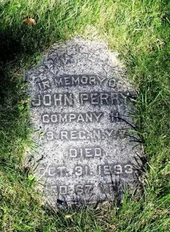 His last residence was at 591 Second Avenue in Manhattan. He died from enteritis. As per his death certificate, Perry was married and worked as a baker. His obituary in the New York Herald states that comrades from the 79th New York were invited to attend his funeral. Shortly after his death in 1893, Frances Perry, who is interred with him, applied for and received a widow’s pension, certificate 393,500. Section 135, lot 27263, grave, 2312.