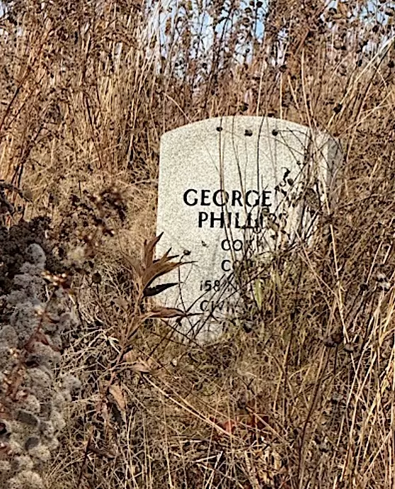PHILIPS, GEORGE A. (1831-1885). Private, 6th New York Heavy Artillery, Battery K. Born in the Bronx, New York, Philips enlisted at West Farms (Bronx), New York, as a private, on August 20, 1862, and mustered into the 6th Heavy Artillery on September 2. He was discharged on May 9, 1865, at Harper’s Ferry, West Virginia. His last residence was 265 Lexington Avenue in Manhattan. Section 118, lot 1774.