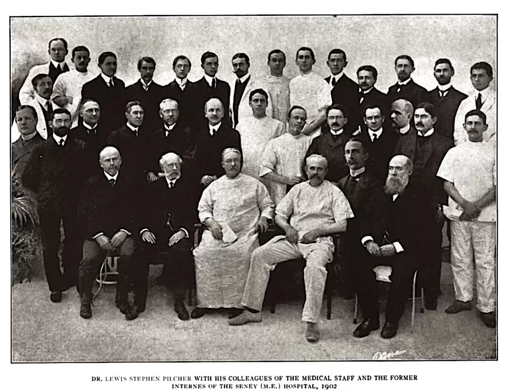 As per his obituary in the Brooklyn Daily Eagle, which confirmed his service as a hospital steward, Pilcher briefly served as a house surgeon at the Harper Hospital in Detroit before coming to New York for post-graduate studies. In addition to practicing medicine, he was a schoolteacher in rural areas of his home state. He had a five-year tour of duty as an assistant surgeon in the Navy, and in 1872, began his medical career in Brooklyn, the hometown of his wife. Dr. Pilcher was a prominent surgeon, author and teacher for 68 years. He had a dissecting room in his house that expanded in conjunction with a library and museum. In 1872, he was appointed as one of the attending physicians of the Central Brooklyn Dispensary and became a surgeon associated with the Long Island College Hospital a year later. Dr. Pilcher was a Lecturer in Anatomy at the Long Island College Hospital. From 1879-1882, he was an Adjunct Professor of Anatomy at the Long Island College Hospital and then became a Professor of Clinical Surgery at the New York Post Graduate Medical School from 1885-1895. In 1881, Pilcher was one of the incorporators of the Methodist Episcopal Hospital in Brooklyn, was a member of its board of managers from its inception and became president of its medical board from 1887 through 1907.