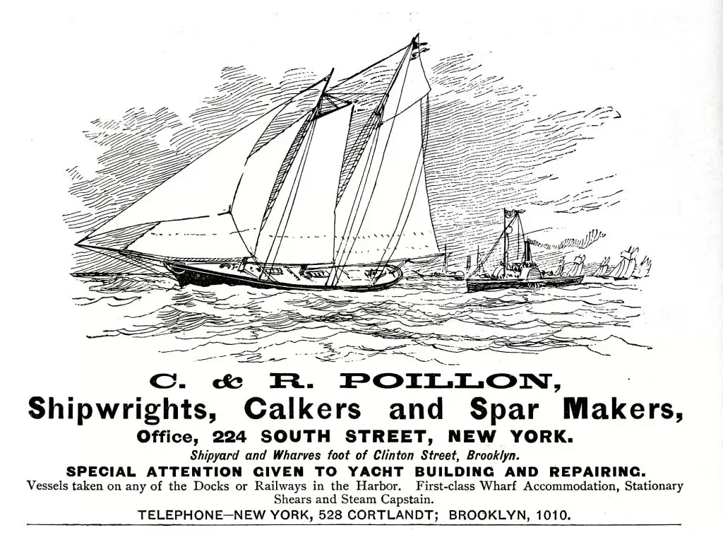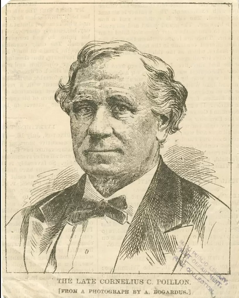 POILLON, CORNELIUS C. (1815-1881). Shipwright. Born in New York, he was senior member of C. & R. Poillon, shipwrights. He built the gunboat Winona and the steamers Newbern and Grand Gulf for the Union Navy during the Civil War. In addition, he built gunboats for the Brazilian and Spanish governments, as well as steamships for the Hartford and Troy lines and many yachts. He was also a member of New York City’s Volunteer Fire Department. He died of diarrhea at his residence, 7 East 32nd Street, Manhattan. Section 57, lot 8583.