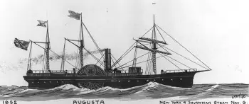 According to a descendant, Pollock was a merchant marine after his Naval duty and was the chief engineer on the steamship Gulf City (the former steamship Augusta Dinsmore), a vessel that transported goods between New York and Galveston, Texas. He died in an accident at Pier 20 on the East River in New York City on November 21, 1868, aboard that craft when he was caught in the machinery and crushed to death. The Gulf City, scheduled to depart for Galveston on that day, was delayed two days because of the accident. Pollock’s obituary in the New York Herald notes that he was the chief engineer of that vessel and died instantly. Further, the Herald reported that he was “a gentleman of exemplary habits and the head of a large family.” As per another obituary, his funeral took place at the First Baptist Church in Hoboken, New Jersey; his friends and family and those of his two brothers and his father-in-law, Henry Adams, were invited to attend. Cemetery records list his death as a “casualty.”