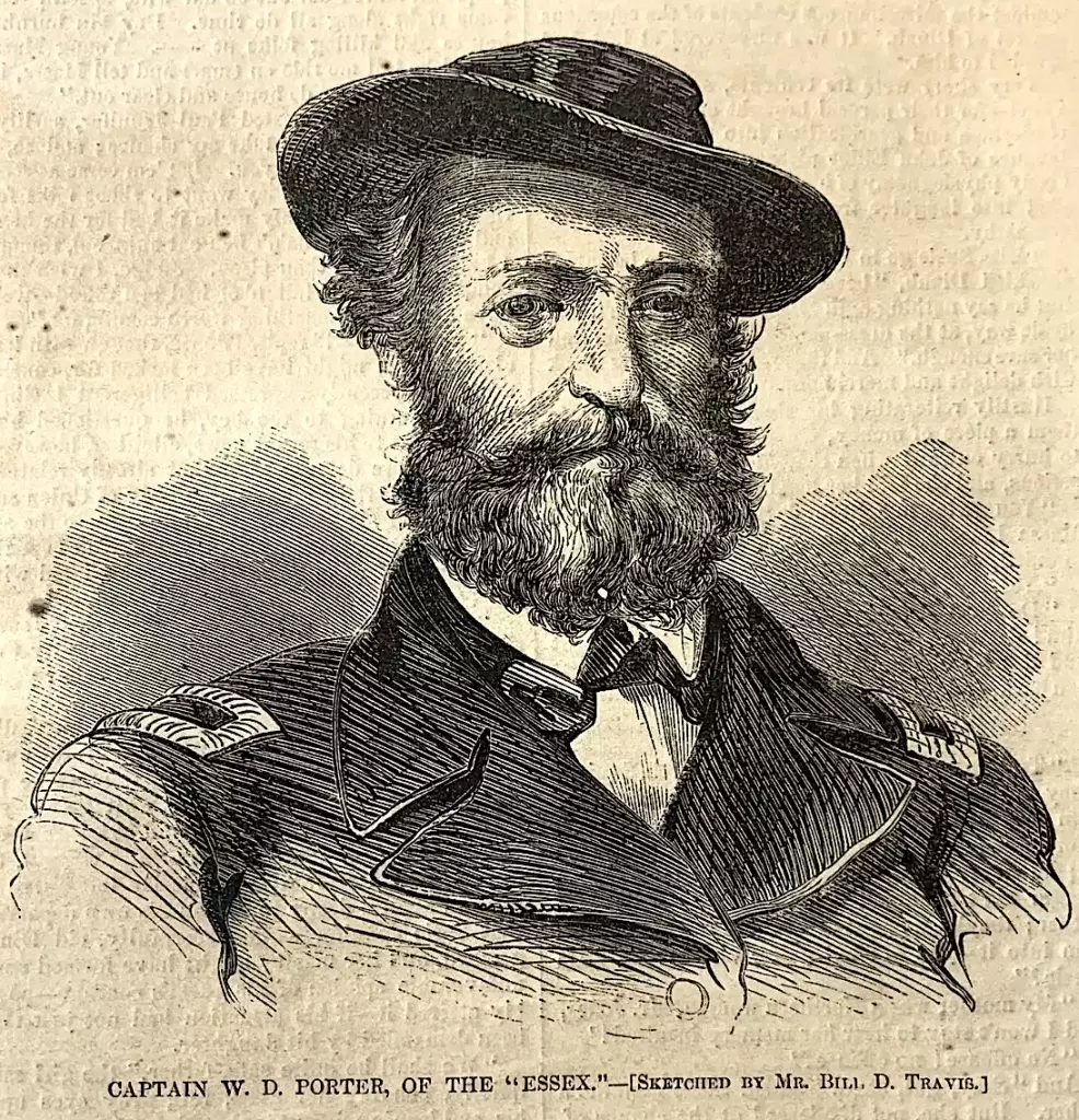 In September 1862, Porter was aboard the Essex in Natchez, Mississippi. There, the Essex bombarded that city and dueled with shore batteries at Port Hudson, Louisiana. Later that month, he was promoted to commodore and sent to New York where he died of heart disease at St. Luke’s Hospital on May 1, 1864. Originally buried at Green-Wood, his remains were moved to Philadelphia, Pennsylvania, in June of that year where he is buried alongside his father, Commodore David Porter, at the Woodlands Cemetery.