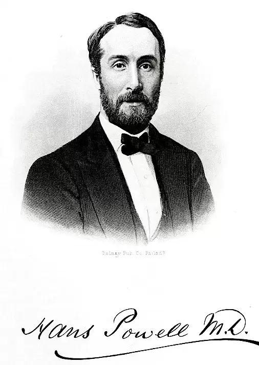 POWELL, HANS (1843-1885). Surgeon, 3rd New York Infantry; assistant surgeon 142nd New York Infantry. A native of Dublin, Ireland, Powell received his diploma there from the College of Surgeons in 1860. That same year, he immigrated to the United States and started his medical practice in New York City. During the Civil War, he enlisted as an assistant surgeon on March 30, 1862, and joined the Field and Staff of the 142nd New York. On April 8, 1863, he was formally commissioned into the 142nd, and transferred into the Field and Staff of the 3rd New York on June 8, 1865, where he was promoted to surgeon. He mustered out on August 28, 1865, at Raleigh, North Carolina.