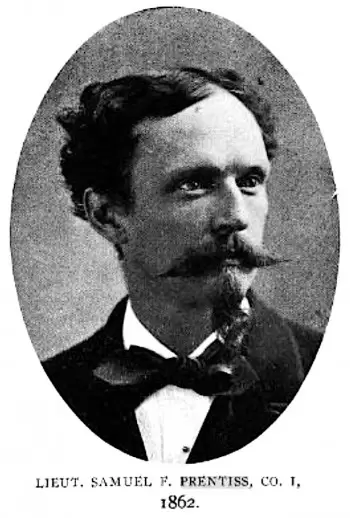PRENTISS, SAMUEL F. (1842-1894). First lieutenant, 13th Vermont Infantry, Company I. A resident of Montpelier, Vermont, Prentiss enlisted as a private on August 25, 1862, and mustered into the 13th Vermont on October 10. According to the history of the 13th Regiment Vermont Volunteers, he was never with the company but was in detached service as an aide-de-camp to General Edwin Henry Stoughton and General George J. Stannard for the duration of his enlistment. He was promoted to first lieutenant of his company on February 23, 1863.