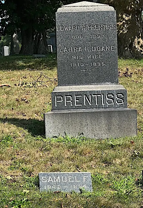 A soldier from the 13th Vermont wrote about Stoughton, “…I will only say that if he been in his place, which was with the Brigade, not five miles from it with only a small guard, he would not have been taken. We do not feel very sorry about it. If they had not taken the horses it was a disgraceful thing. They (the Rebels) worked it shrewd. There was not a gun fired nor any alarm given until they had left….” Mosby’s Raid was the subject of two television documentaries, Secret Missions of the Civil War (2005) and Spies in Crinoline (2009). In another recollection, Mosby said of that raid, “The safety of the enterprise lay in its novelty; nothing of the kind had been done before.” Prentiss mustered out on July 21, 1863, at Brattleboro, Vermont. He moved to New York City after the War where he practiced law and was active in community affairs. His last address was 135 Lefferts Place in Brooklyn. Frances Prentiss, who is interred with him, applied for and received a widow’s pension in 1904, certificate 589,373. Section 110, lot 10167, grave 2.