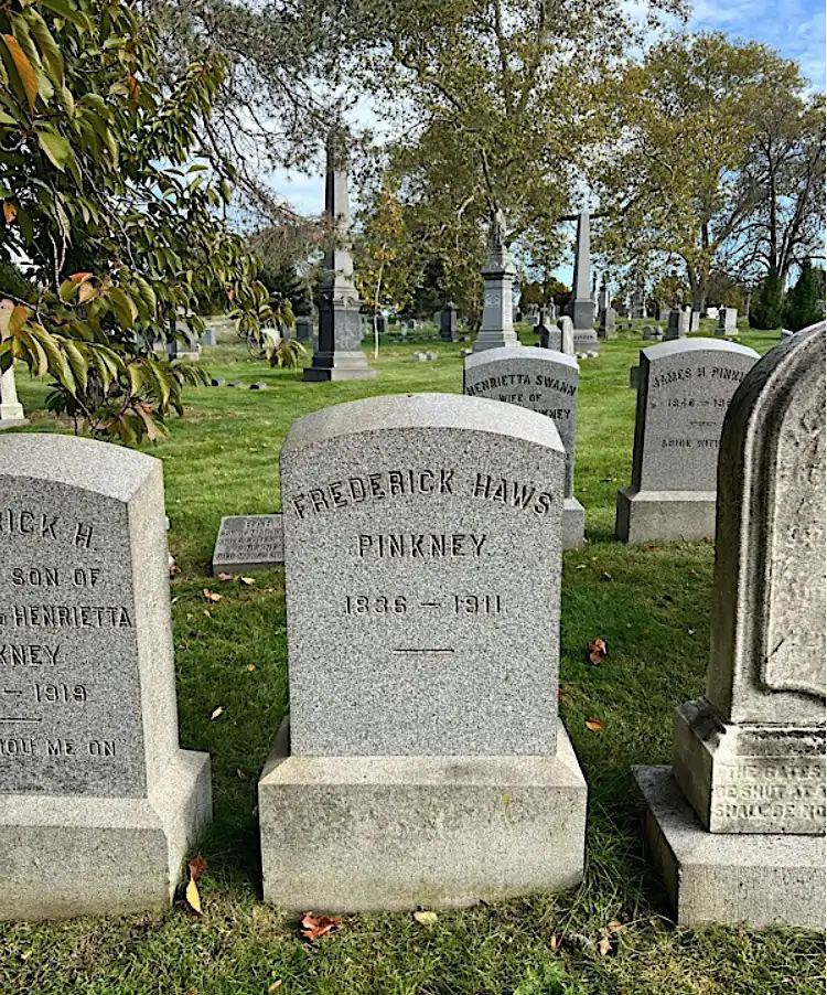 PINKNEY, FREDERICK HAWS (1835-1911). Private, 7th Regiment, New York State National Guard, Company G. Enlisting and mustering in at New York City on May 25, 1862, he mustered out there with his regiment on September 5, 1862. He last lived at 27 West 127th Street in Manhattan. Pinkney died of angina pectoris. Section 114, lot 16572.