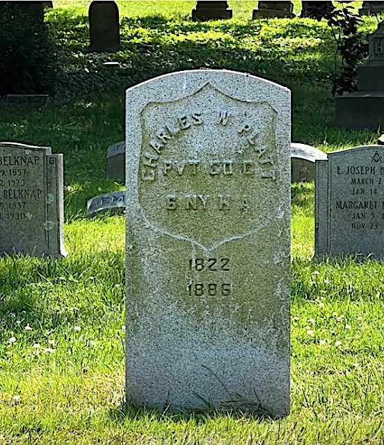 PLACE, CHARLES A. (1840-1879). Captain, 15th New York Engineers, Company F. It is most likely that Place is not buried at Green-Wood. No record of his burial at Green-Wood has been found; it appears that his monument is a cenotaph. Place enlisted at Camp St. John as a second lieutenant on August 10, 1861, and was commissioned into Company F of the 15th New York Engineers on that date. He was promoted to first lieutenant, Company H, on November 1, 1862, and to captain on January 9, 1863. His monument at Green-Wood Cemetery indicates that he took part in these Virginia battles: Yorktown, Seven Pines, and Malvern Hill, all of which were a part of the Peninsula Campaign of 1862. Section 159/162, lot 14464.