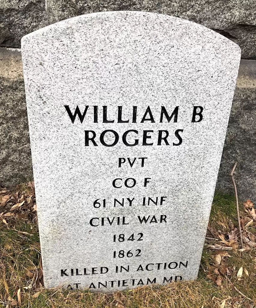 Rothert’s cenotaph at Green-Wood, in his family’s lot where his parents and sister are buried, states that he was buried on that battlefield. His name does not appear on the list of those interred at Antietam National Cemetery. Section 57, lots 2938-2939.