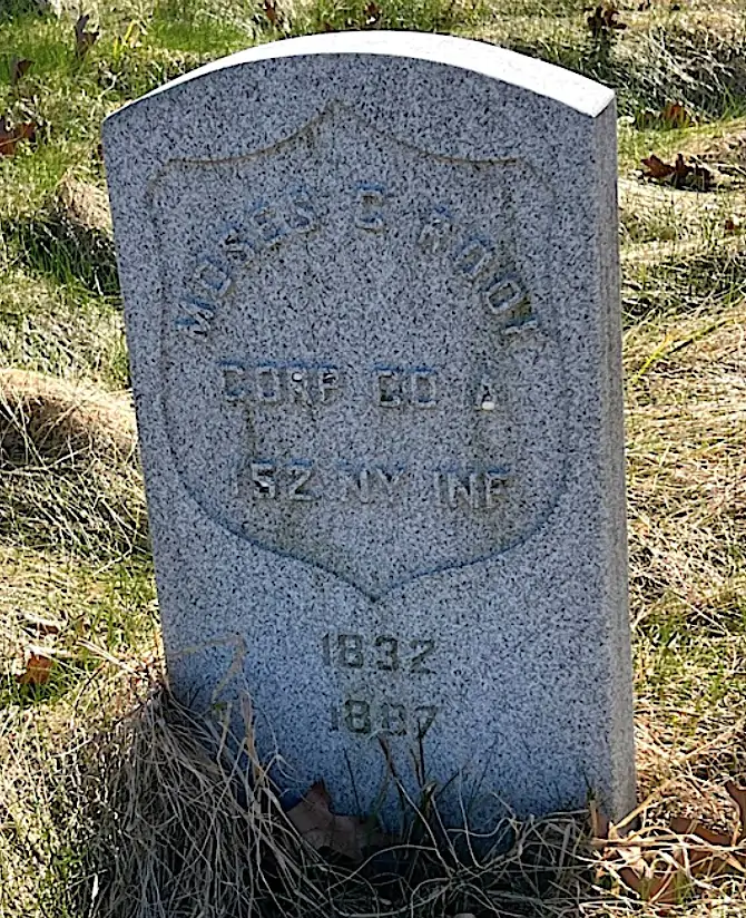 Oscar enlisted as a private at New York City on October 29, 1862, and mustered immediately into Company C of the 55th New York Infantry. As per his muster roll, he was a clerk who was 5′ 11″ tall with blue eyes, light hair and a light complexion. The muster roll notes “no further record.” Subsequently, he served as a private in Batteries B and E of the 1st New Jersey Light Artillery. His soldier record and pension index card shows service in both batteries but the order differs. He began on September 25, 1863, was transferred on February 2, 1864, and mustered out on June 12, 1865, at Richmond, Virginia. In November 1922, his pension application was approved, certificate 1,229,219. Both his muster roll and pension record are posted on his Find A Grave webpage.