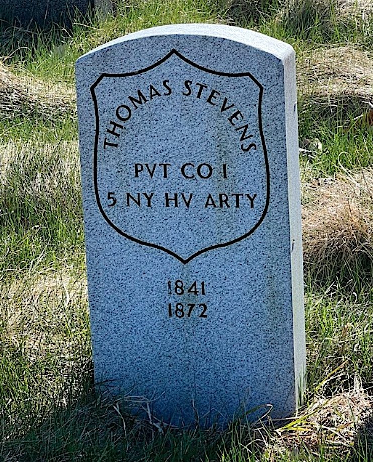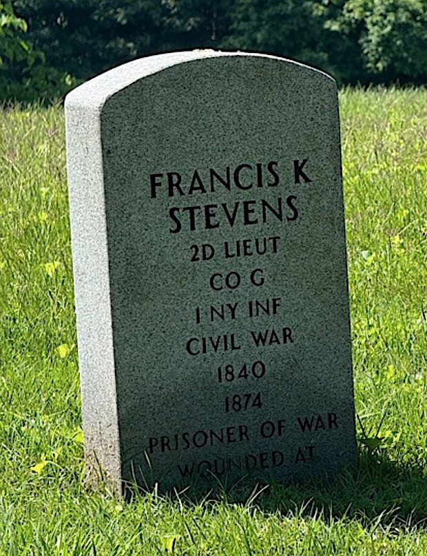 STREERS (or STEERS), FRANCIS J. (1839-1870). Captain, 90th New York Infantry, Company C. Steers, an Irish native, enlisted as a first lieutenant at New York City on December 24, 1861, and was commissioned into the 90th New York on January 13, 1862. He was promoted to captain on April 9, 1864, and mustered out at New York City on December 10, 1864. During his service, he was in the Téche country at Port Hudson, Louisiana; Donaldsonville, Shenandoah Valley; Key West, Florida; and Fort Jefferson, Tortugas, and Beaufort, South Carolina. Steers was also detached to Rikers and Hart’s Island, New York Harbor, where he was a judge advocate at two general courts-martial. His bio is listed in William Swinton’s History of the Seventh Regiment (1870); it is not known when he served in Company G. His last address was 233 East 24th Street in Manhattan. Section 85, lot 17700, grave 141.