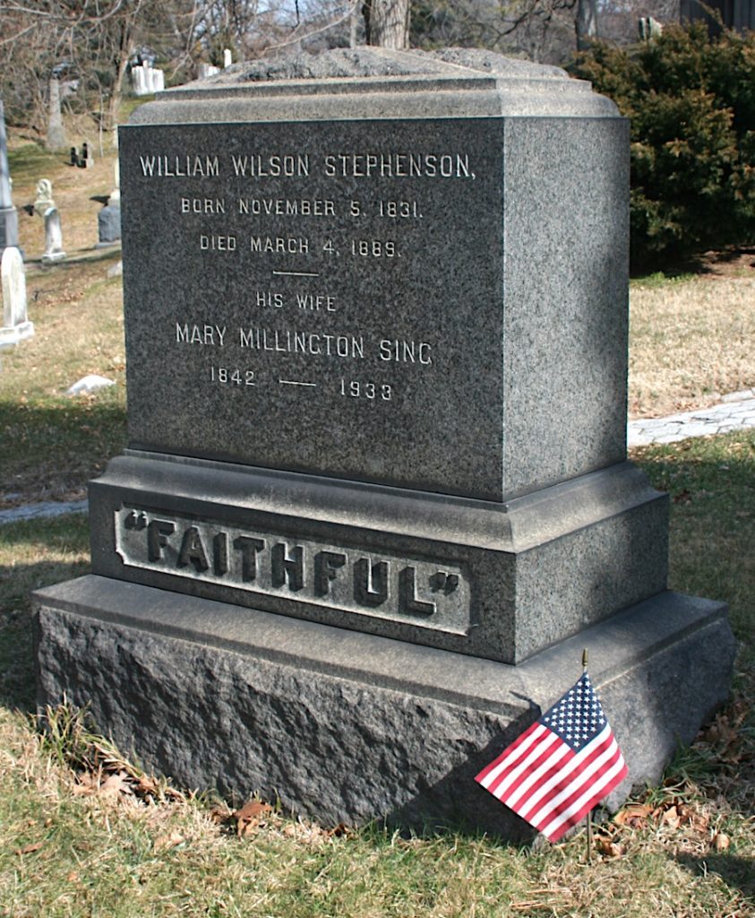 The New York City Directory of 1877 indicates that Speaight was in the blankbook business (ledgers, journals and other blank-paged books). According to his obituary in the New York Herald, he was a member of Lafayette Post #140 of the G.A.R. and the Veteran Association of the 7th Regiment; members of both groups were invited to attend his funeral. He last resided at 93 Wilson Street, Brooklyn. Sarah A. Speaight, who is interred with him, applied for and received a widow’s pension in 1891, certificate 424,354. Section 79, lot 10607.