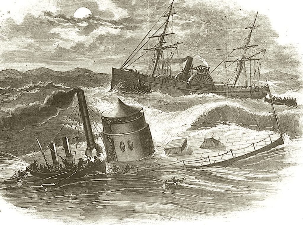 …That poor Monitor fleet, which went forth with colors flying, carrying the hopes of the nation with it, has met disaster at every turn, encountered obstacles and sustained repulse, been battered and bruised, and finally settled down at anchorage not far from Morris Island. Even here it has been pursued, and the winds of Heaven with the waves of the ocean have destroyed and pushed down from sight, one of its best and strongest, and most vaunted components.