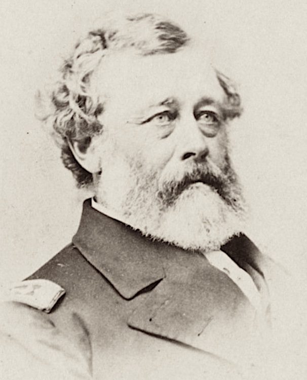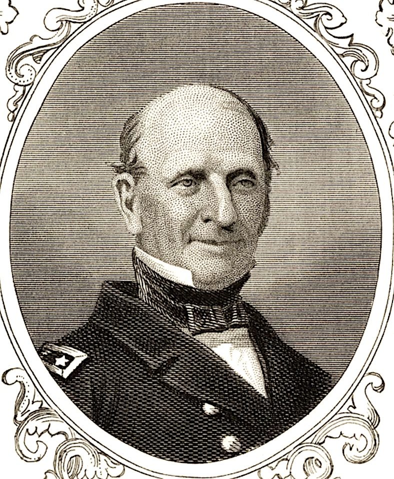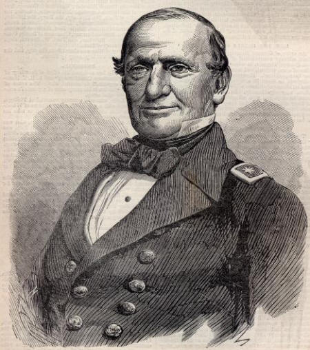 When there was a threat of civil war, he was an advisor to President Buchanan and urged relief at Fort Sumter but his advice was not followed in a timely fashion. In May of 1861, he became flag officer of the Atlantic Blockading Squadron with command of 25 vessels and 3,500 men from Key West to Chesapeake Bay, and helped plan and carry out the first naval expedition of the Civil War, the capture of Hatteras Inlet, North Carolina. He conducted this amphibious assault with General Benjamin Butler. This marked the first time during the War that shore batteries were bombarded broadside by wooden vessels. The expedition to Cape Hatteras was successful; the forts were surrendered without loss to Union forces on August 29, 1861. The Confederates lost 12 men, 35 were wounded, 715 were taken prisoner, and large quantities of ammunition and stores were captured. Lieutenant Matthew J. Graham of the 9th New York wrote of that mission, “…The Commodore adopted a system of attack peculiarly his own. Constantly moving his vessels in a circle he discharged his broadsides while abreast of the forts; then quickly swinging around he returned on the other side of the circle out of range of the fire from the forts. Each vessel imitated the action of the flagship, thus making it very difficult for the artillerists in the forts to train their heavy guns with accuracy on a ship in continuous motion…”