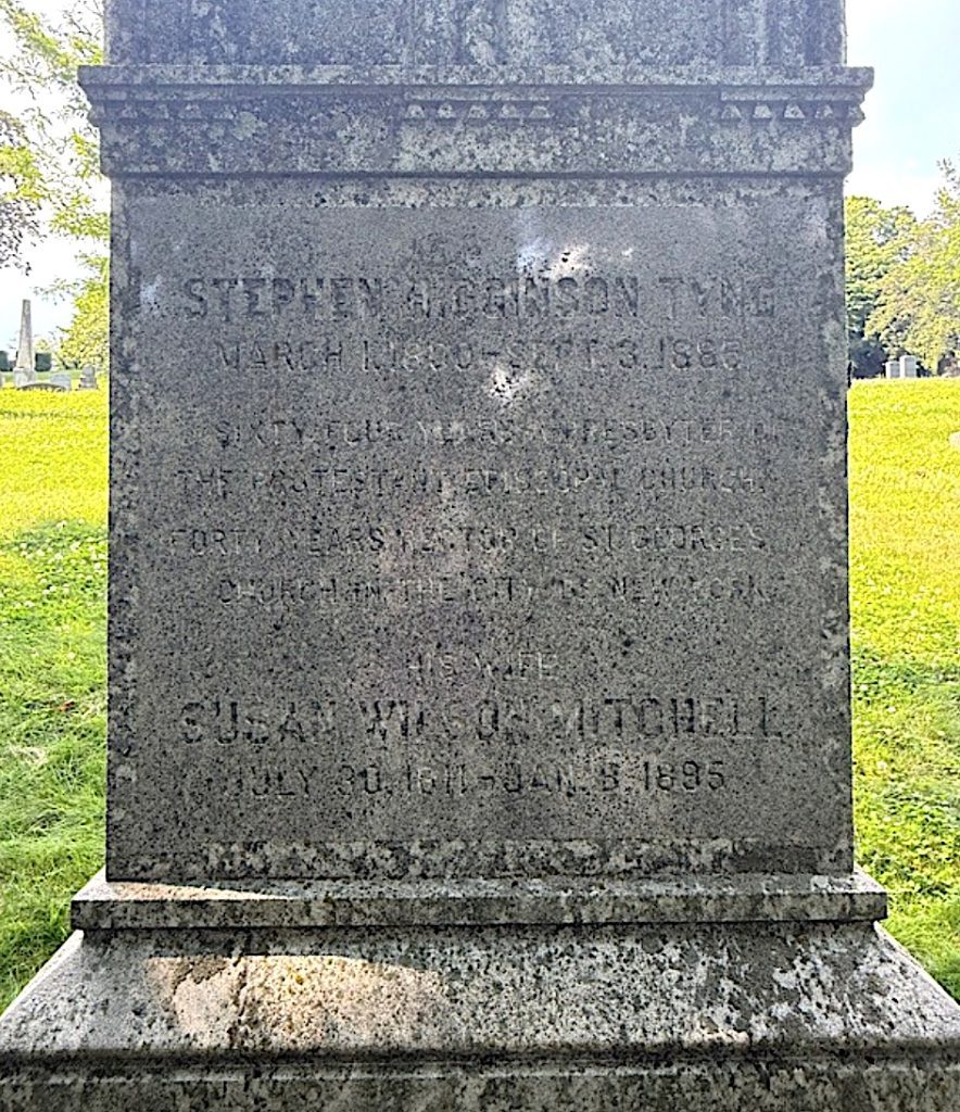 On June 19, 1863, Tyng enlisted as a chaplain at New York City, was commissioned into the Field and Staff of the 12th National Guard, and mustered out after 30 days on July 20 at New York City. Widely known in Episcopal circles as a great preacher, he was active in supporting Sunday schools to teach the Bible and prepare people for conversions. In New York, his church was a pioneer parish for missionary work for the poor. He worked as an editor on church journals, favored revival meetings, but did not support the schism of the Reformed Episcopal Church in 1873. His sons, Charles (see) and Thomas (see) both served in the 7th Regiment. He died in Irving-on-Hudson, New York. Section 99, lot 11479.