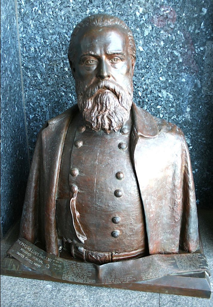 SWEENY (or SWEENEY), THOMAS WILLIAM (1823-1892). Brigadier general, United States Volunteers and Missouri Volunteers; major, Regular United States Army; colonel, 52nd Illinois Infantry. Born in County Cork, Ireland, he came to New York City at the age of 12 with his widowed mother. He worked as a printer and joined the militia. He volunteered for service during the Mexican War, was elected second lieutenant of Company A of the 2nd New York Volunteers, and was wounded so badly at Churubusco that his right arm had to be amputated. On his return to New York in 1848, he was given a “Grand Reception Ball” at Castle Garden by the printers of New York. Later, he fought Yuma Indians in the Southwest, where he was wounded in the neck by an arrow in 1852, and fought the Sioux on the Great Plains as a lieutenant in the 2nd United States Infantry.