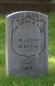 WILLIAMS, WILLIAM (1840-1880). Private, 4th New York Light Artillery; 5th New York Light Artillery. Born in Norway, he enlisted as a private at New York City on October 8, 1861, the same date that he mustered into the 4th New York Light Artillery. He transferred into the 5th Light Artillery on December 12, 1863, from which he was discharged. His last address was 53 East 112th Street in Manhattan. Section 190, lot 23160.