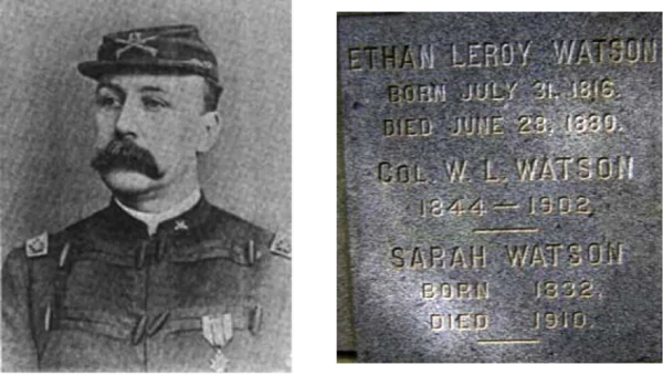 WATSON, WILLIAM L. (1844-1902). Captain, 21st Wisconsin Infantry, Company G; private, 7th Regiment, New York State National Guard, Company E. Watson was born in Albany, New York, and served as a Congressional page as a youth. His ancestry dates back to the Plymouth colony and one relative, John Watson, was a land surveyor in Hartford, Connecticut, in 1644. He served in New York’s 7th Regiment during 1861. Later, as a resident of St. Lawrence, Wisconsin, he enlisted as a sergeant on August 20, 1862, and mustered that day into the 21st Wisconsin. He was taken as a prisoner of war at Perryville, Kentucky, on October 8, 1862, and subsequently was promoted to first sergeant.