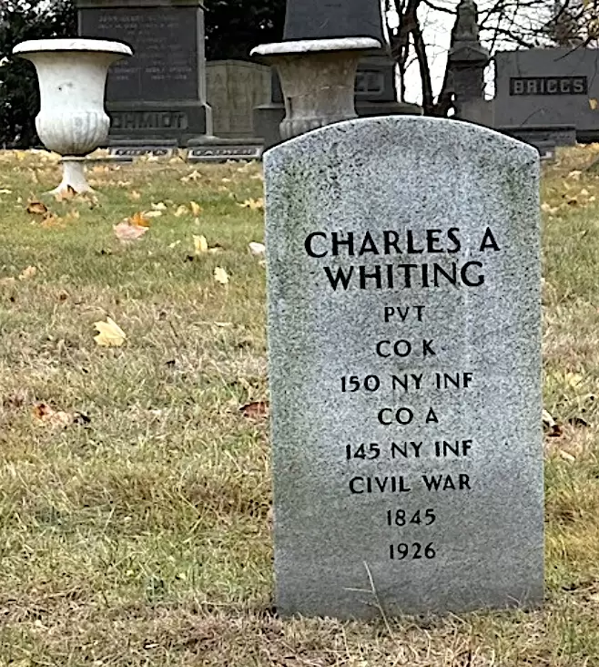WALTERS, FRANCIS B. B. (1834-1874). Private, 158th New York Infantry, Company F. A Brooklyn native, he enlisted there on September 6, 1862, mustered immediately into the 158th New York, and was discharged on June 3, 1865, at Washington, D.C. He last lived in Plainfield, New Jersey, where he succumbed to consumption. Section 71, lot 23.