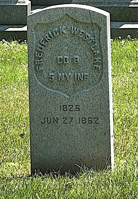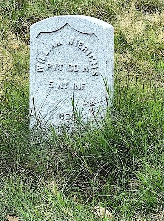WALTER (or WALTERS), WILHELM (1837-1892). Private, 72nd New York Infantry, Company A. A native of Germany, he enlisted at New York City as a private on May 27, 1861. On June 21, he mustered into Company A of the 72nd New York from which he was discharged for disability on January 5, 1863, at Point Lookout, Maryland. He last lived on Willett Street in Brooklyn. Section 115, lot 21201.