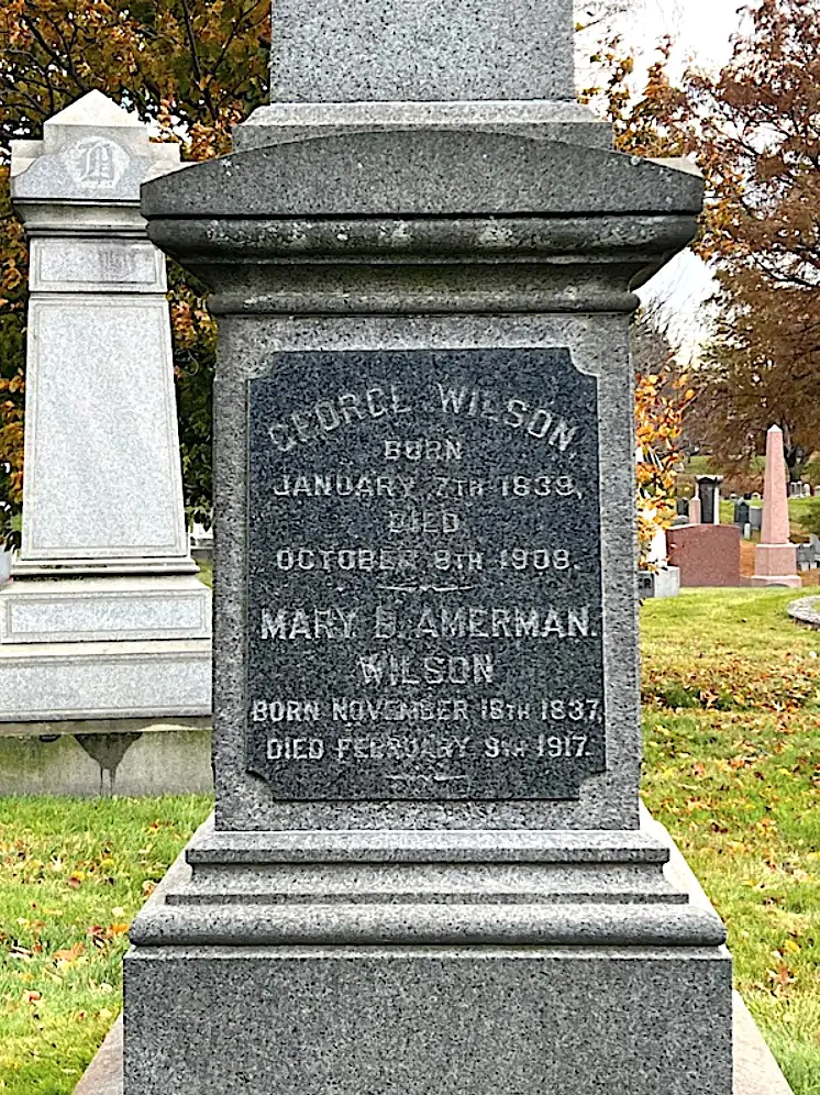 As per his obituary in the Brooklyn Daily Eagle, Wilson was a member of the Ulysses S. Grant Post #327 of the G.A.R.; comrades were invited to attend his funeral. He last resided at 339 Gates Avenue in Brooklyn. Section 194, lot 31155.