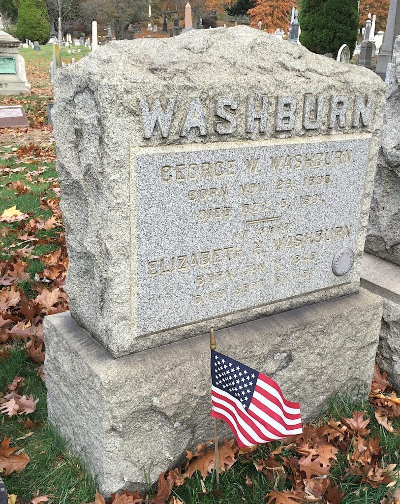 When Washburn re-enlisted on February 14, 1863, he entered service as a landsman in the Navy. He was appointed paymaster’s clerk aboard the USS North Carolina, was transferred on October 14, 1863, to the USS Fort Jackson, where he was appointed paymaster’s steward, and served until his discharge on April 30, 1864, at New York City. Washburn belonged to the Henry M. Lee Post #21 of the G.A.R. Most likely, he was the brother of George Washburn (see). Section 43, lot 338.