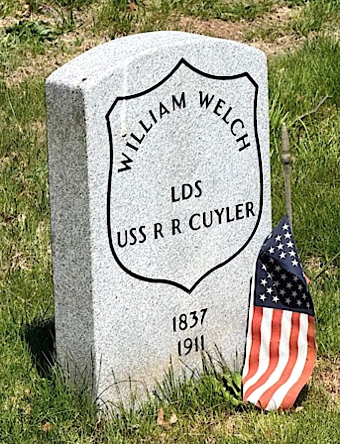Continuing in the Navy after the war, Williamson was onboard the Osceola until September 4, 1867. He re-enlisted on October 18, 1867, was assigned to the USS Tuscarora and discharged at Key West, Florida, on November 16, 1870. He continued as a seaman on the steamship Cortez in New York Harbor when, in June 1872, he suffered an accidental fall from the forecastle of the ship to the main deck fracturing his left thigh. After his discharge, he returned to Kingston, New York, then lived in Belfast, Northern Ireland, at the time he applied for a pension in 1891 which was granted under certificate 29,101. Williamson reapplied for a pension in 1907, living the Sailors’ Home in Snug Harbor, Staten Island, as of 1900. His pension totaled $20 a month. Section A, lot 9146, grave 114.