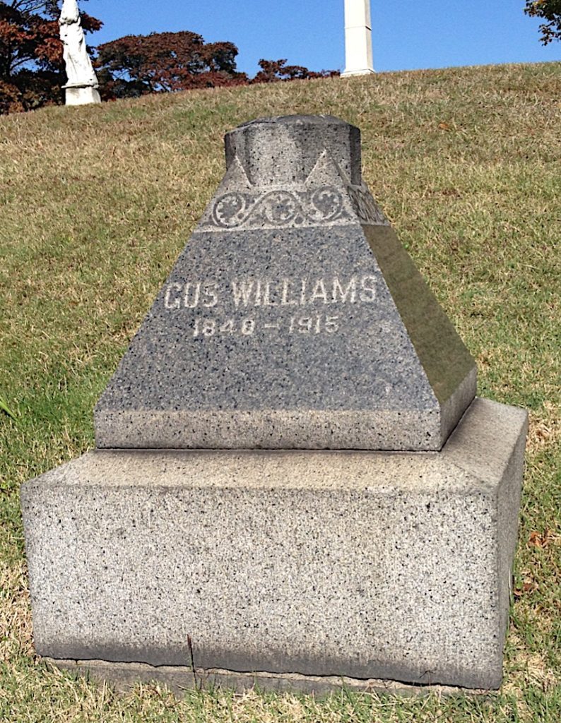 When the war ended, Williams took to the stage, making his debut at Tony Pastor’s Theatre in New York in 1866. He made his first appearance in Boston, Massachusetts, in 1868, and was for many years the most popular actor in that city. In 1885, he adopted his stage name as his legal name. In his day, he was the highest-paid vaudeville performer in the country and one of the first German comedians. He was active in the movement for higher wages for vaudeville players and was the first to earn $500 a week for an engagement. In addition, he wrote comic and sentimental songs. He was the founder of the Boston Elks Lodge. At the age of 70, after entertaining audiences for virtually his entire life, he committed suicide by shooting himself in the head at the Yonkers railroad station. Section 48, lot 22246.