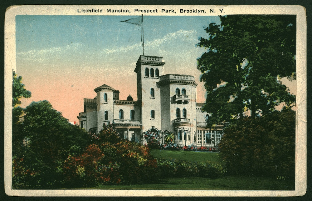Park Slope was one of the earliest residential neighborhoods to develop in Brooklyn, attracting New Yorkers who could easily commute to thriving Manhattan via ferry service. This course of development can largely be attributed to Edwin Clarke Litchfield (1815-1885). During the 1850’s he purchased large tracts of farmland in the area and sold them off to residential developers. His legacy lives on in Brooklyn through his mansion home, Litchfield Villa, located in Prospect Park. Litchfield’s elegant estate, designed by Alexander Jackson Downing, became city property after his death. Today it is the headquarters of the Brooklyn Parks Department and a beloved Brooklyn landmark. Click the image to expand.
