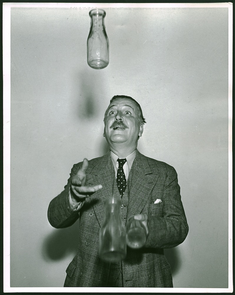 Francis Wupperman, better known by his stage name, Frank Morgan (1890-1949), will forever be remembered for his role as the title character in the Wizard of Oz. An eccentric and jovial character actor, Morgan was already a well-respected long before his 1939 role as “The Wizard.” His first film was released in 1916, over a decade before the first “talkies” were introduced. Sound films enabled Morgan to really flourish as an actor and he became highly sought after for both comedic and dramatic roles. In the accompanying photo, Morgan demonstrates his juggling ability, a skill he learned for a scene in his 1938 film “The Crowd Roars.” Click the image to expand.