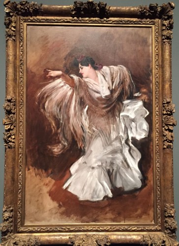 La Carmencita Dancing, 1890. An electrifying Spanish dancer, she took New York by storm that year. Sargent was much taken by her, referring to her as “the bewildering superb creature,” and captured her in motion here.La Carmencita, 1890. This painting was a sensation when it was displayed in New York, London, and Paris.Sargent’s scandalous painting of Madame X. It was greeted with hostility at the 1884 Paris Salon. Negative reaction to it led to Sargent abandoning Paris for London.Dr. Samuel-Jean Pozzi commissioned this full-length portrait of himself in 1881. He was the father of modern French gynaecology. His hands of a surgeon are featured here. Pozzi was famous for his love affairs, including one with actress Sarah Bernhardt. He was also a collector. Sargent called him “a very brilliant creature.”Carolus-Duran was Sargent’s first tutor. Sargent joined his atelier in Paris when he was only 18 years old and quickly became its star pupil. This painting was widely praised and was exhibited in New York, Boston, London, and Paris. Painter Edgar Degas was impressed by it. It generated six commissions for Sargent.Actress Ellen Terry as Lady Macbeth, 1889. Sargent was in the first-night audience for Terry’s performance and was so taken with her that he resolved to paint her. Terry, after resisting posing, was pleased she did; she described the painting as “magnificent.” This portrait, displayed in London, became the sensation of the season.