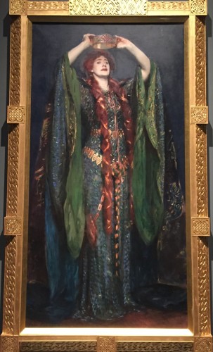 William Merritt Chase, 1902. Chase dominated the New York art scene for years as a portraitist, Impressionist landscapist, and teacher. Chase, who had known Sargent for 20 years, came to Sargent’s London studio to sit for his portrait and offered to pose as “either or a gentleman or as an artist.” Sargent told Chase to don “his working rags, and we will try it that way.” Here Chase is a natily-dressed gentleman artist, with palette and brushes.Detail of the Chase portrait. The paint brush and palette identify him as a painter.William Merritt Chase’s gravestone at Green-Wood. It has not aged well and is barely readable. His favorite model and wife, Alice Gerson Chase, is buried next to him.Ada Rehan, 1894-1895. Born in Limerick, Ireland, she came to America as a young girl. At the age of 16, she followed her sisters onto the stage. She was acclaimed on both sides of the Atlantic for her performances in Shakespeare’s comedies and in contemporary plays.Detail of the Rehan portrait.