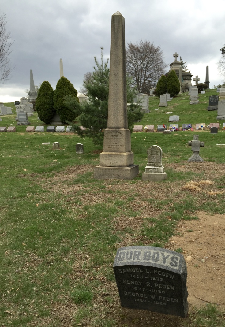 Those children lie in lot 4781–sold in 1851 as an enclosed lot for children. The first burial in that lot occurred in 1857, and the last in 1870.