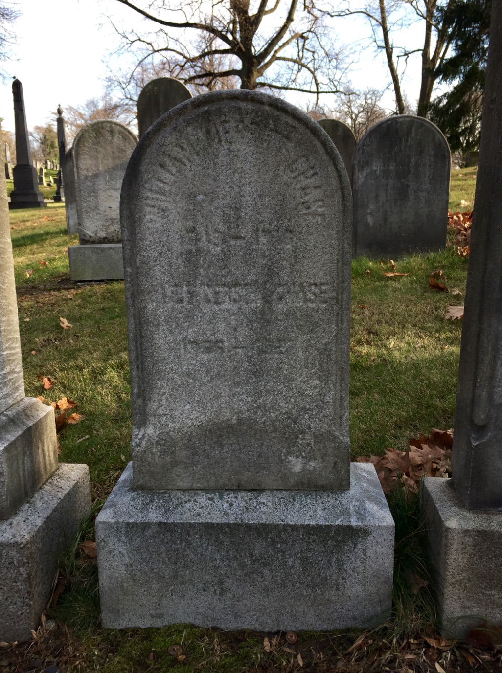 The lot holds 29 bodies. Included are 6 Chases and 6 Gersons–members of William’s and Alice’s families, including several of their children. Chase died in 1916. Alice died in 1927, 11 years later. Her last residence was at 234 East 15th Street in Manhattan–on Stuyvesant Square–the same address listed for Chase in 1916, when he died; her death, at the age of 61, was due to carcinoma. Her family asked that Chase’s grave be opened for Alice’s interment; that wish was carried out, and they have lain together for a century. A modest gravestone, carved with their names and life dates, marks their final resting place.