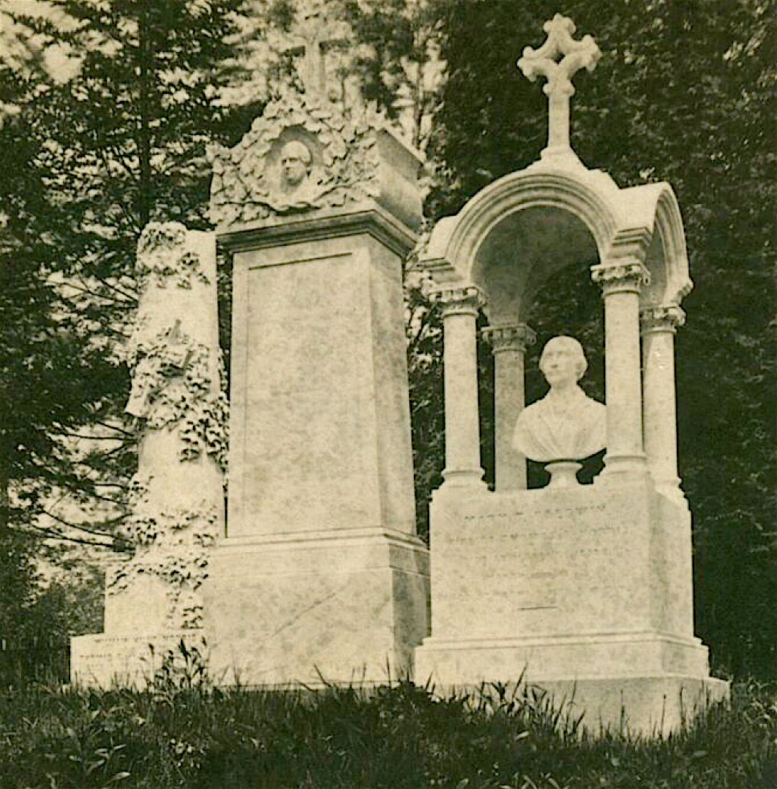 I recently was working on pinpointing the location on the grounds of a marble bust of Mary T. Baldwin Norris. I knew this work from several stereograph photos in The Green-Wood Historic Fund Collections–photos dating mostly from 1865 to 1875. We have software at Green-Wood that allows us, once we locate the lot where a photograph was taken long ago, to translate that lot number into a GIS location. Then the techies at the Urban Archive app, with whom we are working, pinpoint the location of the relevant photograph on their map of New York City for visitors to explore. Stacy Locke, Green-Wood’s manager of historical collections, who has worked closely with Urban Archive, reports that 200 early photographs of the cemetery’s grounds are now accessible on the free Urban Archive app.