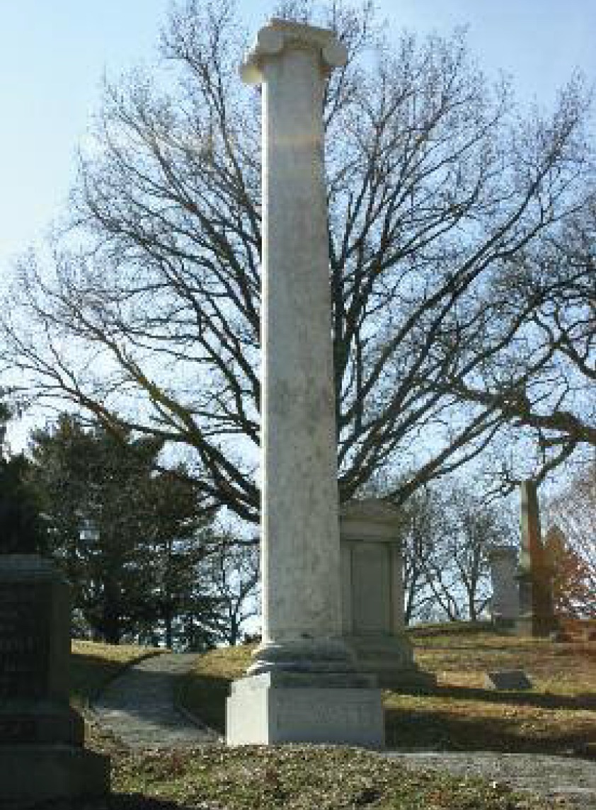 In section 70, lot 1792, visible from Vista Avenue, and near Vista Path, is the McKim, Mead & White memorial to the Cromwell family. Frederic Cromwell (1843-1914) graduated from Harvard in 1863 and went into the insurance business; for twenty years, he was the treasurer and a trustee of the Mutual Life Insurance Company. He also was a director of many railroads as well as a bank, an engraving company, and a coal company. He died at his estate, Ellis Court, in Bernardsville, New Jersey.