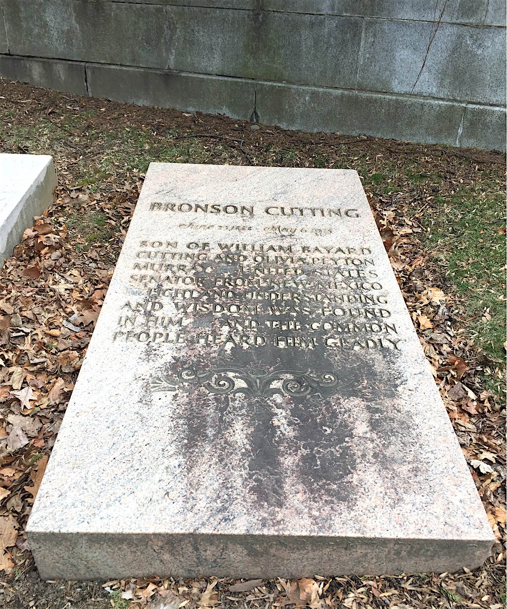 Further, in a second letter, dated April 20, 1937, on McKim stationery, Lawrence Grant White, the son of Stanford White and himself a partner in the firm, wrote to Green-Wood: “I have designed a gravestone for grave no. 4 . . ..” That would be Bronson Cutting’s grave: