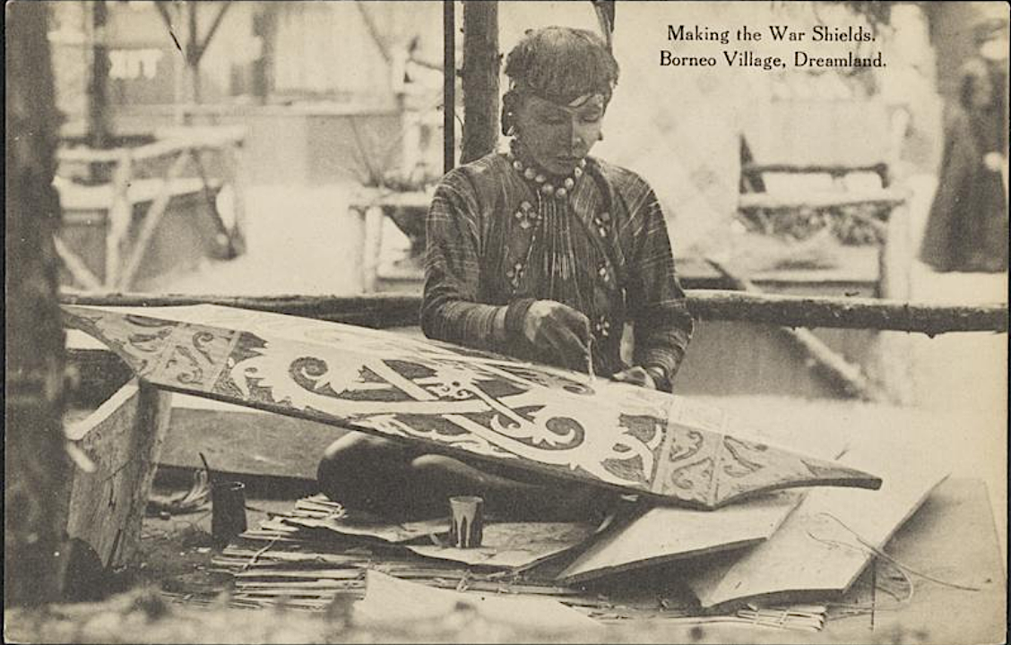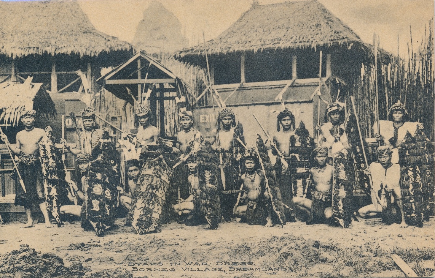 These are rare images of the Dyak tribesmen who made up the Borneo Village.