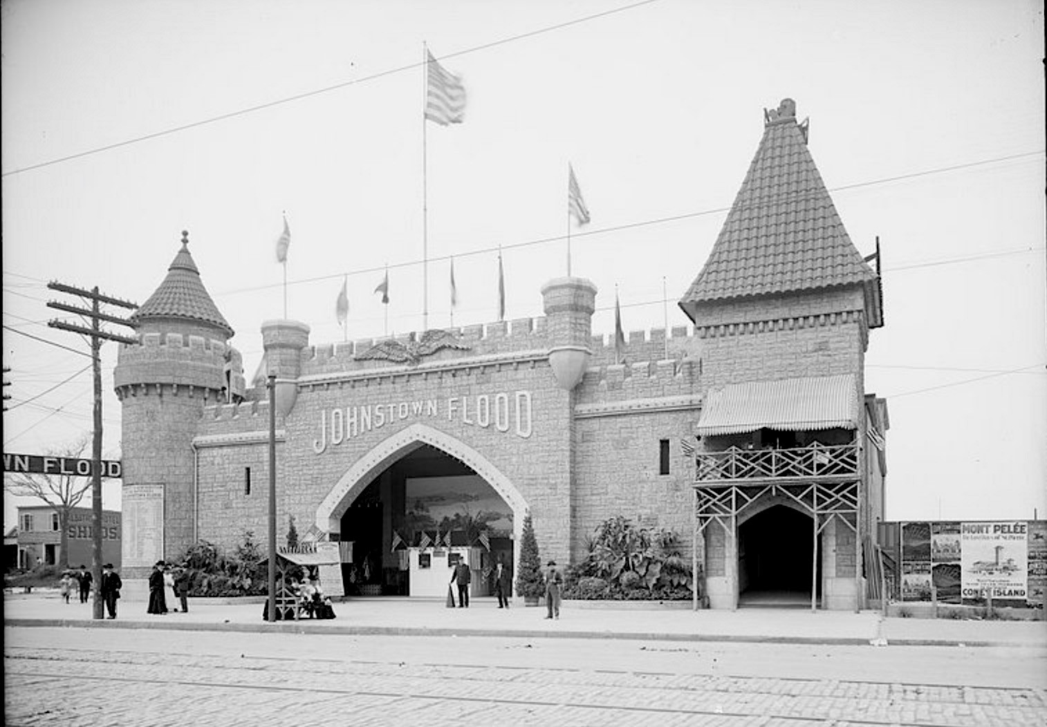 Re-creations of disasters also were big entertainment–how about a visit to the Johnstown Flood, where you could revel in the death of the more than 2000 people who had died just a few years earlier, and thrill to the tragic disaster that had befallen them? Or perhaps a visit to the Galveston Flood, where 6,000 perished?