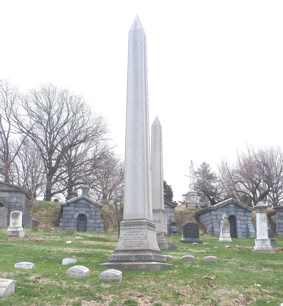 Kathryn Lane eventually remarried in 1948. Loring Lane is buried at the Netherlands American Cemetery in Margraten, Netherlands. There is also a cenotaph to his memory in the Lane family plot at Green-Wood. Section 124, lot 14488 (cenotaph).