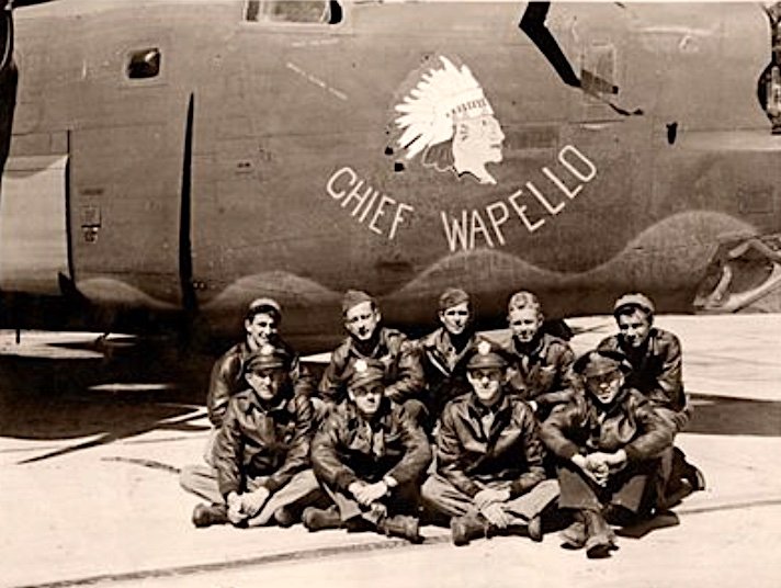 Here is my wife’s father’s story: William P. Lordi (pictured top row left) was a waist gunner in the Army Air Corps 8th Air Force, 487th Bomb Group stationed in Lavenham in Suffolk, England. On September 28, 1944, while filling in on a B17 #44-6463 from his regular B24 crew, they were on a mission to bomb an enemy oil refinery in Meersburg, Germany. On the way to the target between Coblenz & Wiesbaden they encountered intense flak which scored a direct hit on the plane, immediately dropped out of the formation and the crew started to bail out. A large hole was bored into the aircraft behind the number 3 engine and blew out the waist windows. The aircraft continued under control, three chutes came out, two opening and the third was temporarily caught on the ball turret with a man dangling from it. Co-pilot Kelvin Pierce recalled, ‘It was our 14th mission, the approach to the target was at 27,000 feet and the anti-aircraft flak was extremely heavy. We had just released our bombs and turned away when we were hit. The plane was riddled and filled with smoke. A severely injured radio operator was treated in the Leipzig-Warren Reserve Hospital but later died of his injuries. The pilot Clarence Lamason gave his account after the war. Crew member & hero waist gunner Sergeant William Gaucheness assisted in pushing out the radio operator and other injured crew members, roused the lower ball turret gunner, fought fire in the radio room until all extinguishers were empty, returned to flight deck to help all abandon ship. My wife’s father, William Lordi, was blinded by the flak hit and was pushed out of the plane by Sergeant Bauchens. The plane crashed near Naherstille; nine of the ten crew members survived.
