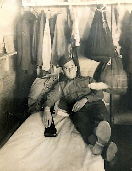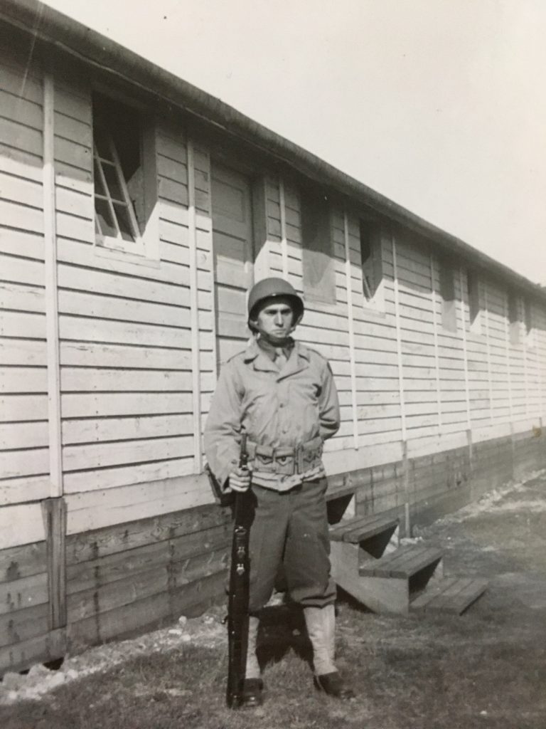 He was inducted into the Army in August, 1944. He joined Rifle Company B of the 357th Infantry Regiment, 90th Infantry Division, according to company photographs from the time. As a rifleman, he was no doubt involved in close combat as his company moved through Europe in the last year of the war.